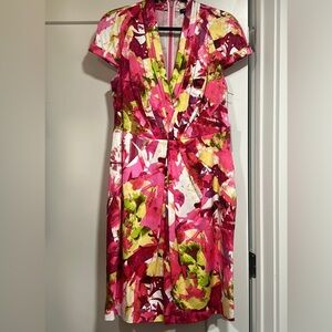 Etcetera Pink Hibiscus Floral Cap Sleeve Dress. NWT