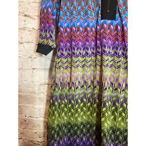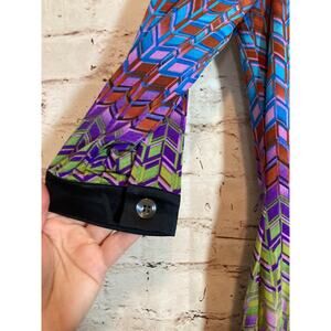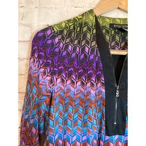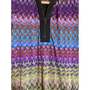 Etcetera Popover Dress Womens 2 Satin Retro Rainbow Tiles Zip Pockets Stretch