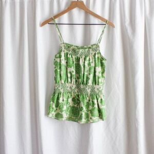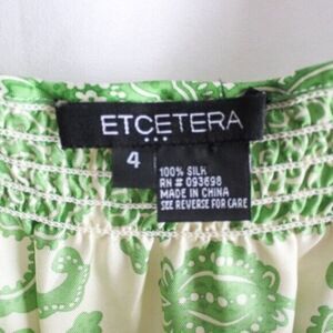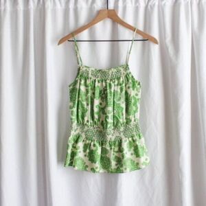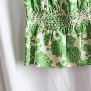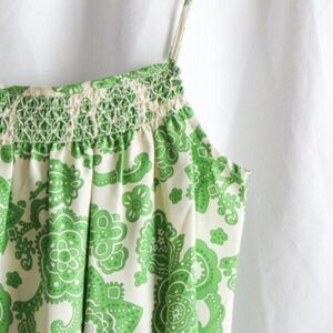 Etcetera Print Green and White Paisley 100% Silk Smocked Waist Camisole 4