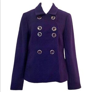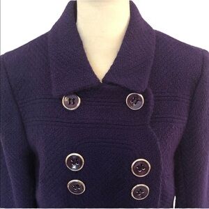 Etcetera Royal Purple Wool Pea Coat Big Gold & Purple Enamel Buttons Size 6