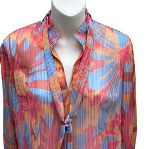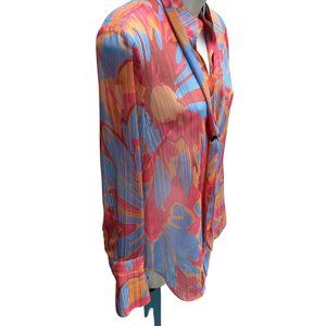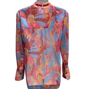 Etcetera Pink/Multi Sheer Long Sleeve V-Neck Pullover Abstract Blouse Top Size 0