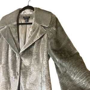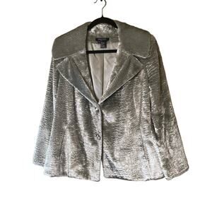 Etcetera Silver Platinum Croc Embossed Faux Fur Jacket Size 14