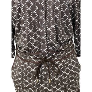 Etcetera Size 0 Silk Rayon Blend Luxury Long Sleeve Brown Print Dress tie waist
