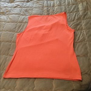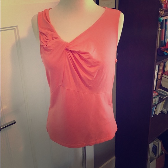 Coral tank from Etcetera with cool neckline details. Asymmetrical v-neck with twist-knit & ruching. Feels like a tee but offers so much more. Worn only a few times. EUC. All reasonable offers considered.