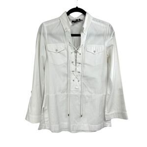 Etcetera White Front Lace Up Long Sleeve Cotton Blend Shirt 4