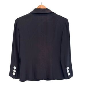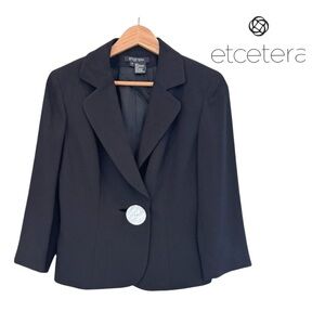 Keywords: Etcetera blazer, women's blazer, black blazer, business jacket, size 4 blazer, long sleeve blazer, button closure, professional attire, women's fashion, pre-owned blazer, like-new condition.