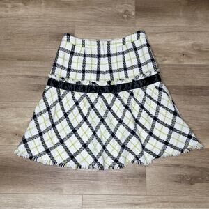 Etcetera Women's Black/White Tweed Pleated Plaid Skirt with Ribbon Trim sz 6