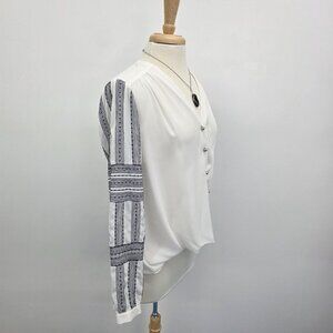 Etcetera Womens Long Sleeve Boho Surplice Blouse Top White Size 10 Button Front