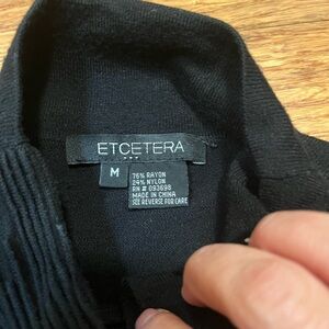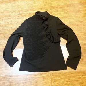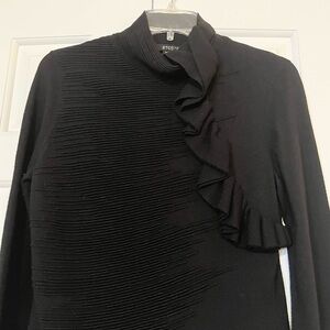 Etcetera Women’s Medium Black Soft Long Sleeve Ribbed Turtleneck Ruffled Sweater