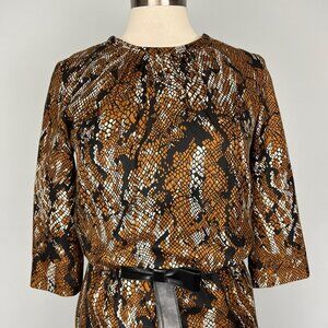 Etcetera Womens Python Print Dress Brown Black Silk Wool Bow Detail Size 2