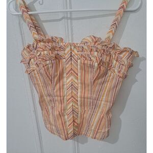 Etcetera Womens Small Yellow Peach Stripe Corset Top Elastic Ruched Back