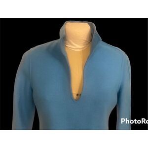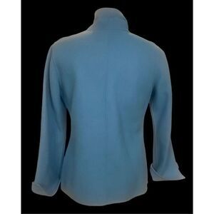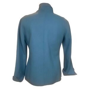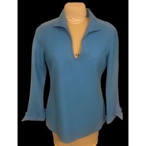 Beautiful tiffany blue tunic by Etcetera. Size 8. Collar can be worn folded up or down. v-Neck. Cuffs can roll up. Wool blend.