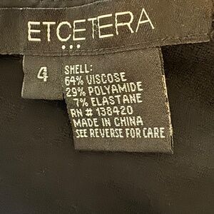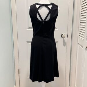 Etcetera brand little black dress. It features a distinctive cutout detail on the front and a sleeveless, A-line silhouette. Slight stretch in material. Size 4