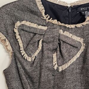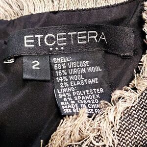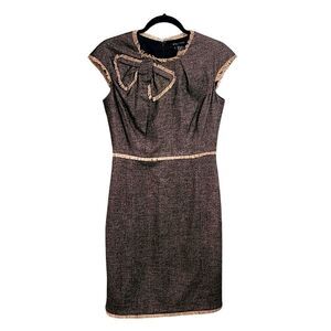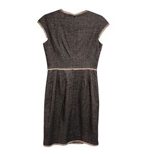 Etcetera taupe & black herringbone wool blend sheath dress cap sleeve zip back 36" bust 28" waist 37" long excellent condition Y2k dressy office career business