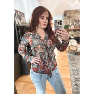 Etcetera top || button down with a frill covering buttons || 100% silk || sheer, I have on a beige tank underneath and it’s not visible || like new condition without signs of wear ||