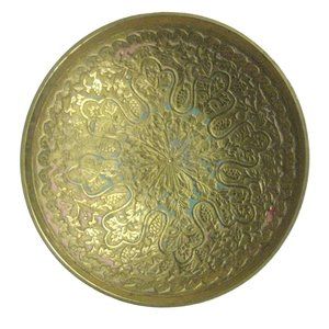 Etched Brass Bowl Chinoiserie Round Footed Decor Trinket 3 7/8 inches Enamel