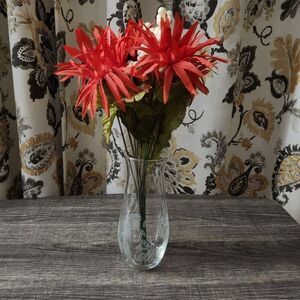 Etched Clear Glass Bud Vase 6.5” Tall Vintage