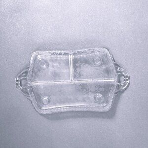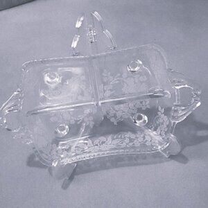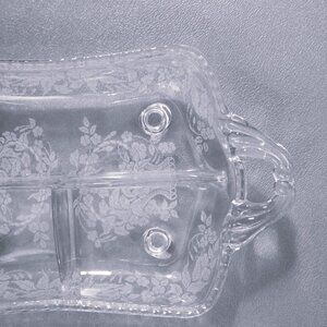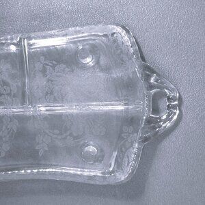 Etched Glass 3-Section Relish Tray With Handles & Feet Floral Design Elegant Din