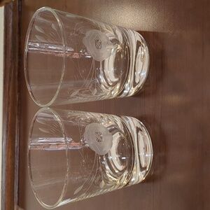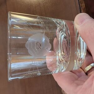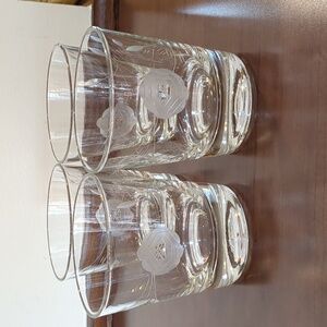 pre-owned set of four etched rose pattern rocks glasses... perfect for the bar or breakfast juice glasses... they hold about seven ounces of liquid... colors in the photos vary depending on the lighting... all items sold from a smoke and pet free home.