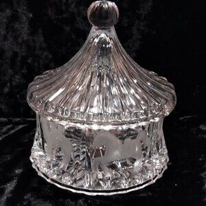 Etched Shannon Crystal Carousel Glass Candy Dish