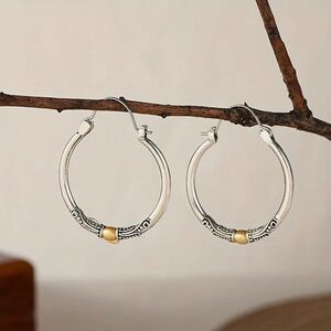Etched Silver Hoop Earrings Vintage Style Secure Back Retro Fashion Jewelry New
