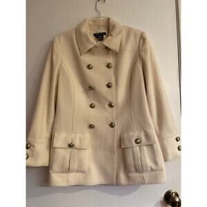 Elegant and cozy Etecectra white wool double breasted coat in size 12. This coat is in excellent condition and perfect for staying warm and stylish during the colder months. Made from high-quality wool, this coat offers both comfort and durability. The double-breasted design adds a touch of sophistication, making it suitable for both casual and formal occasions. Grab this timeless piece to elevate your wardrobe!