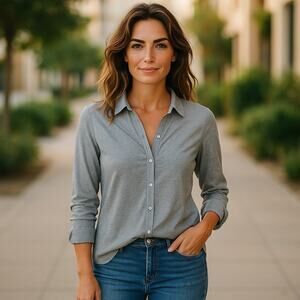Eterna Fitted Womens Gray Heathered Grey Button Down Shirt Top V-Neck Size 42 / 16 US (Check Measurements)