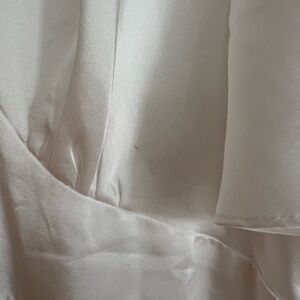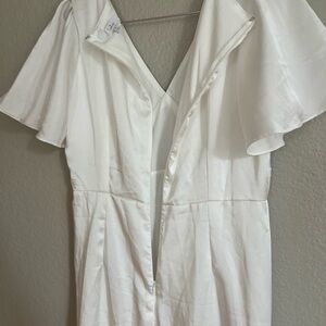 Lulus Eternal Bond White Satin Ruffled Flutter Sleeve Maxi Dress! Lightweight stretch-woven satin sweeps from short fluttery sleeves into gathered cups with a V-neckline and a set-in waist. A figure-skimming maxi skirt is adorned with flouncy ruffles as it falls to an asymmetrical, high-low hem. Hidden back zipper/clasp.