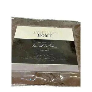 Elevate the style of your bedroom with this Eternal Collection by Jennifer Adams King duvet cover set. The solid brown color and modern style make it a perfect addition to any bedroom decor. The set includes a pillowcase and duvet cover, both made with high-quality materials.