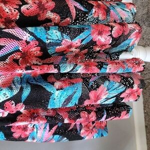 Multi color laser cut floral print skirt