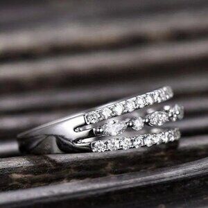🔥Eternity 925 Silver Plated CZ Three Stackable Dainty Ring for UNVN12319