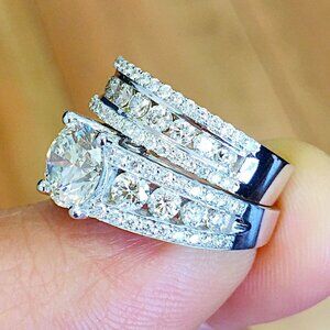 "Bague Eternity Full CZ Diamonds Silver Plated Couple Chunky Ring Set, UNVN12286