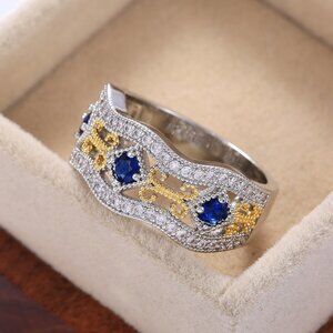 Eternity Royal Blue Flower Carving Vintage Rings for Women, PD247