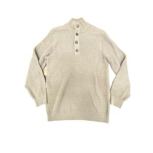Ethan Pierce Half Buttoned Turtleneck Sweater Beige Cotton Blend Men’s Size M