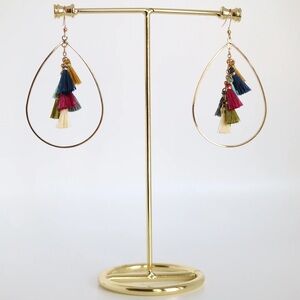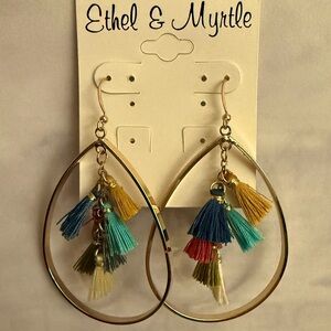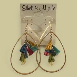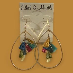 Ethel & Myrtle Gold Teardrop Dangle Earrings with Multicolor Tassels