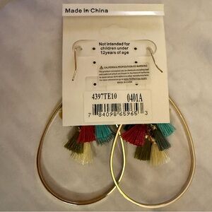 Ethel & Myrtle Gold Teardrop Dangle Earrings with Multicolor Tassels, 3” Drop