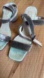 Heels made in Spain from Ethem. Beautiful light bluish/green and gray velvet possibly never worn! The ankle strap detail is so cute. Small yellow stains (pictured). I’d love to wear these to a wedding or party! The thick heel will make them super comfortable too.