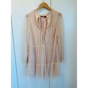 Women's Sheer Dress Size Medium Blush Pink Puff Sleeve Coquette ballerina core Soft Girl Aesthetic