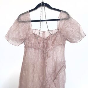 Ethereal blush pink sheer maxi dress with ruffle details pearl neck chain | Sz S