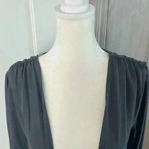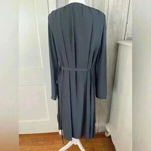 Elevate your wardrobe with this ethereal romantic feminine duster blouse from Lily Black. The classic long sleeves and wrap belt closure make it a versatile piece for any season. The blouse features a solid pattern in a beautiful blue dusty gray color.