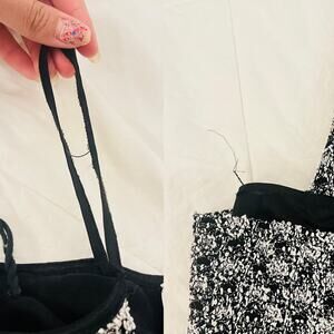 Neat stretchy knit reminds me of the spicy tv screen. It appears almost glowy. The texture is soft and fun to feel. Fully lined with soft poly. Very stretchy straps. Slit at the back for comfortable sitting. From my closet to yours ❣️ cleaned, and ready for wear