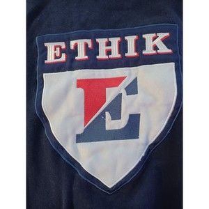 Ethik Worldwide Mens Sweatshirt Size M Navt Blue w Yellow trim Ethik Shield, See pics for measurements and condition.