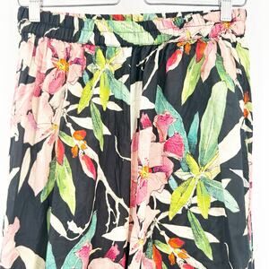 Ethnc Womens Summer Resortwear Pull On Elastic Waist Tropical Floral Pants M