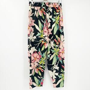 Ethnc Womens Summer Resortwear Pull On Elastic Waist Tropical Floral Pants in Multicolor. Size medium.