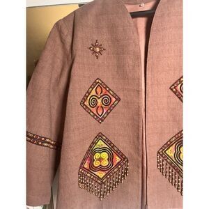 Ethnic Boho Embroidered Blazer Jacket Art To Wear Beaded Open Southwestern M