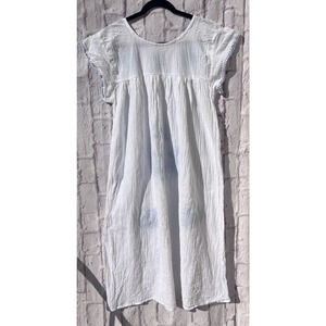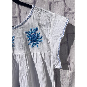 Ethnic Boho Peasant Embroidered Floral Gauze Midi Huipil Caftan Dress Ecuador M