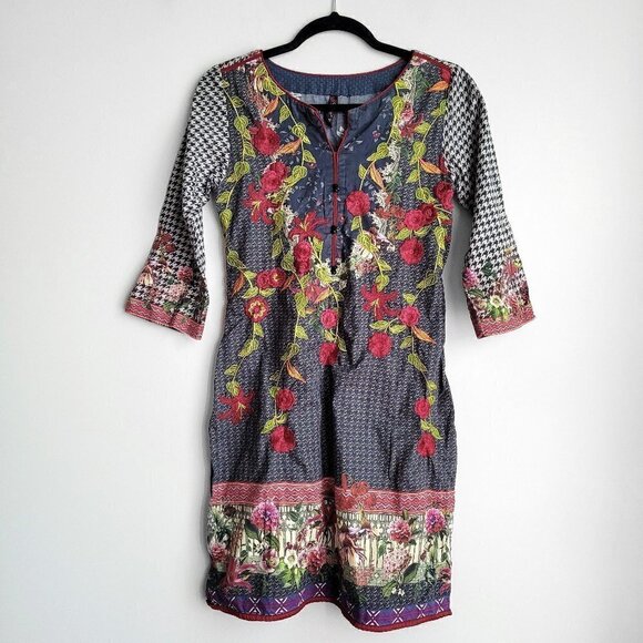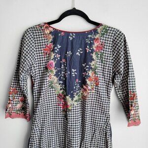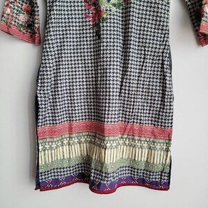 Ethnic By Outfitters Floral Printed & Embroidered Houndstooth Boho Tunic Kurta