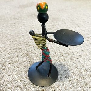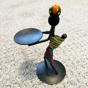 Ethnic Figurative Sculpture Iron Wire Candle Holder Tribal Woman Mother Child