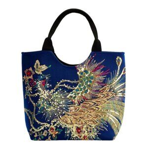 Make a vibrant, bold statement with this stunning peacock-motif tote! This beautiful bag blends rich, cultural-inspired style with everyday functionality, making it perfect for festivals, travel, or adding a pop of color to your daily look.