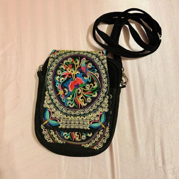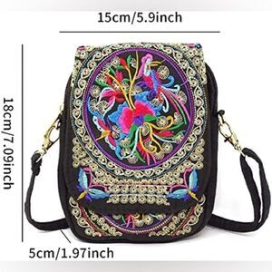 Add a pop of vibrant, bohemian charm to your outfit with this Ethnic Style Handmade Embroidered Crossbody Bag. Crafted with intricate embroidery on durable canvas, this mini shoulder bag is perfect for carrying your essentials in style. Its compact size and flip closure make it both practical and eye-catching, while the adjustable crossbody strap ensures comfort and versatility. Ideal for festivals, casual outings, or as a unique statement piece, this bag blends traditional craftsmanship with modern functionality for a look that’s truly one of a kind. In good used condition.
